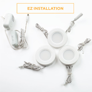| What Makes it EZ? | Virtually Tooless install; No AC wiring required, just plug it in; Flushmount or Recess install; Easy to position with extra adapter cables; Easy connectivity from unit to unit;Easy to wipe and clean; |